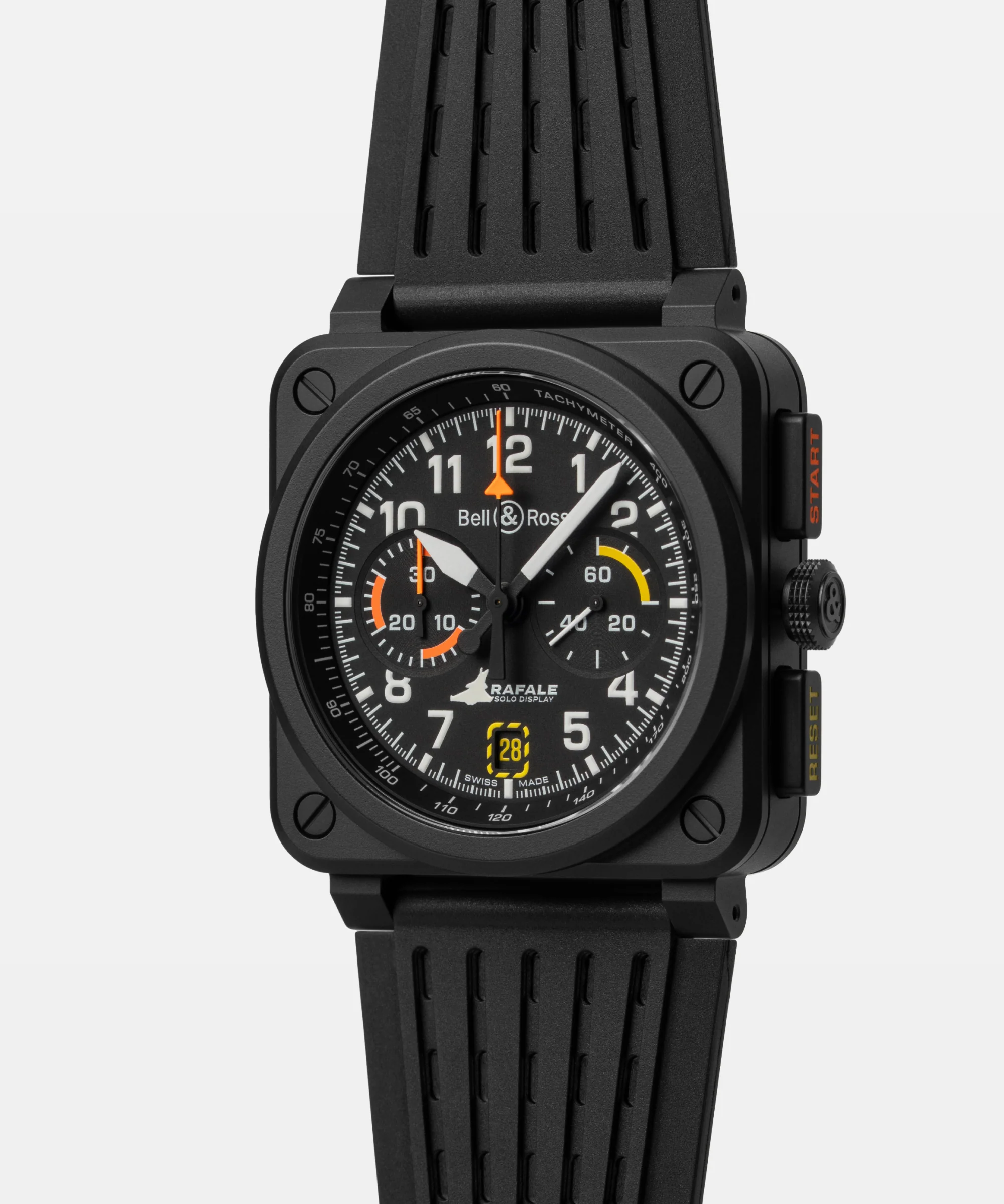 La BR-03 Chrono Rafale Solo Display rend hommage aux performances d’exception du Rafale Solo Display, l’unité de démonstration officielle de l’Armée de l’air et de l’espace. Elle incarne le lien fort entre Bell & Ross et l’aviation.